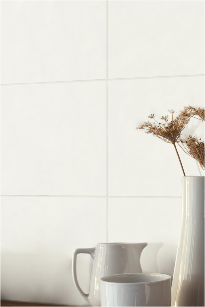 Cerámica brillante, blanca. Caja de 1.98 m2. // 11 unidades por caja.