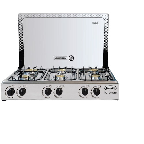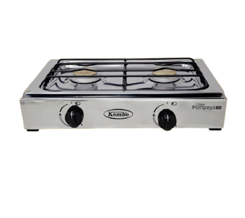 Cocina a Gas, marca Kombo, con tapa, 2, 4, 6 quemadores, para mesa, color acero inoxidable.