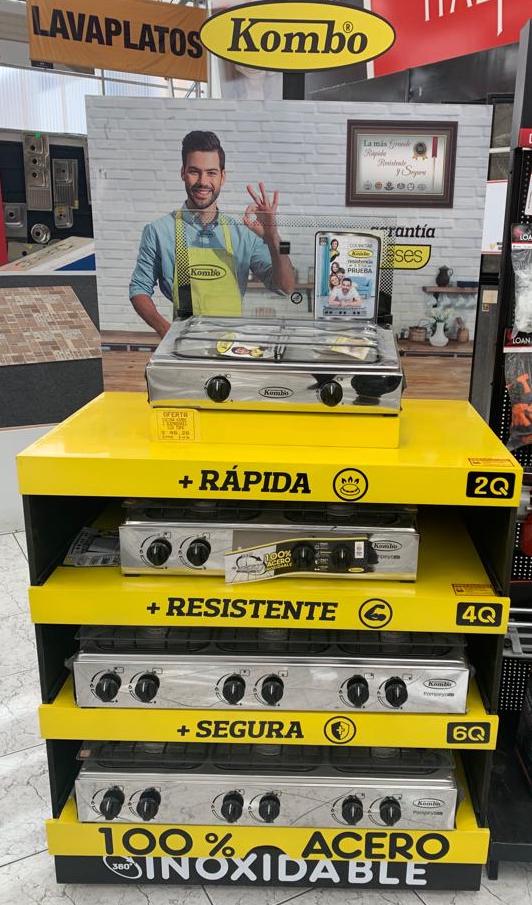 Cocina de mesa, a gas, 2, 4, 6 quemadores con tapa, marca Kombo.