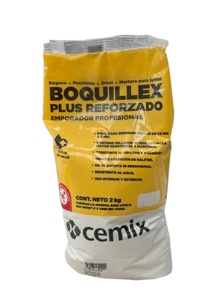 Emporador para cerámica y porcelanato. Marca Cemix. Color blanco. Funda de 2 kilos.