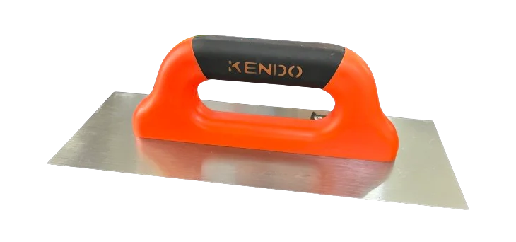 Llana Metálica Lisa, marca Kendo con mango de goma. Código 45304. Medidas: 120×280 mm. Para aplicación de empastes y enlucidos.