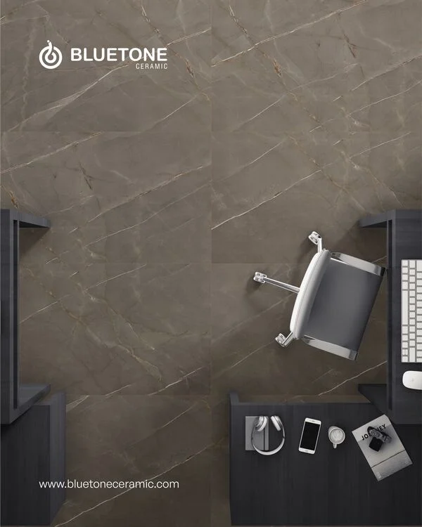 Porcelanato brillante, marmoleado. Caja de 1.44 m2. // 2 unidades por caja. Importado de la India Bluetone, formato 60×120. Usos: pisos interiores, paredes interiores y exteriores. Alta variación en diseño y tonalidad (V4).