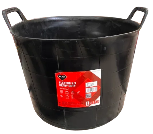 Tanque – capazo de plástico, con asas. Marca Rubí. Ideal para mezclar mortero. Capacidad 40 litros (10.5 galón).